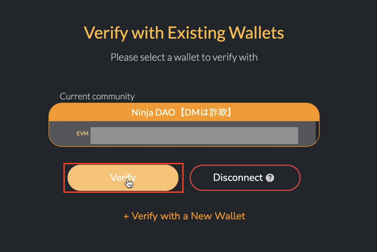 ▽「Verify」をクリック。「Wallet Vonnected!」が表示されたら完了。